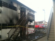07日 4月 2011 お祈り下さい。 4月8日(金) 朝の祈りで教会に入るとどうも何か異臭が あるので換気扇をつけました。 少しして八重子先生が隣のアパートが 火事だったみたいと入って来ました。 行ってみるとご覧の通り、 消防の方に聞くと火元の方は 病院に運ばれたそうです。 tagPlaceholderカテゴリ: コメントをお書きください コメント: 0